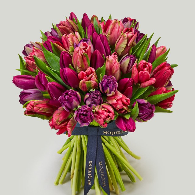 Masses of scarlet stems make for an impressive St Valentine’s Day gesture – and once crafted into a beautifully sculptured hand-tie bouquet by a McQueens master florist it will become the most of memorable gifts. Elevate this crimson bundle with a beautiful vessel – choose your favourite.